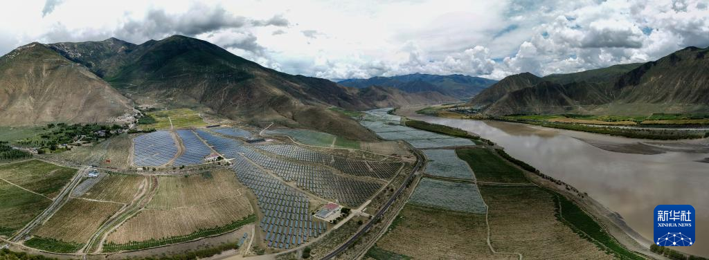 鸟瞰桑日县高海拔葡萄种植基地(无人机照片,7月26日摄)。新华社记者 姜帆 摄