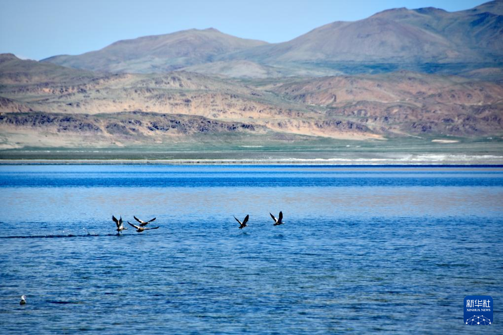 飞鸟从达瓦错湖面掠过(8月28日摄)。