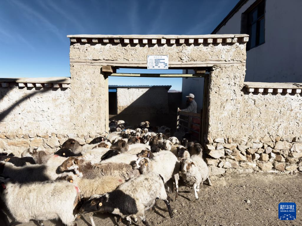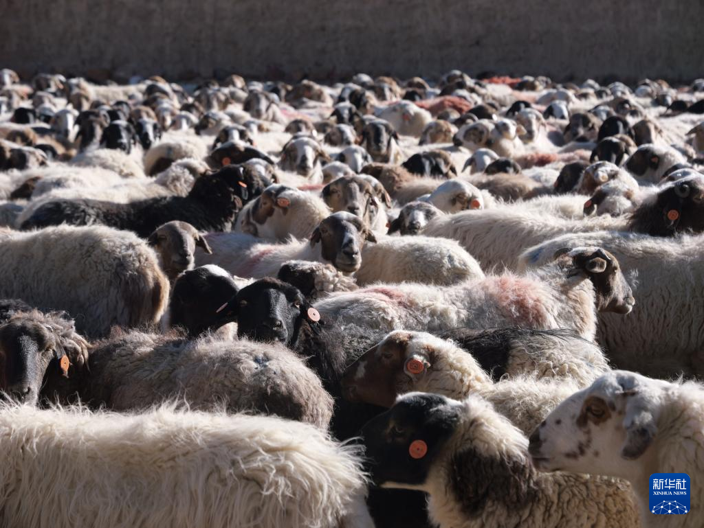 随着标准化的推行,如今贡巴村的羊羔都打上了耳标(12月20日摄)。新华社发 黄智琪 摄