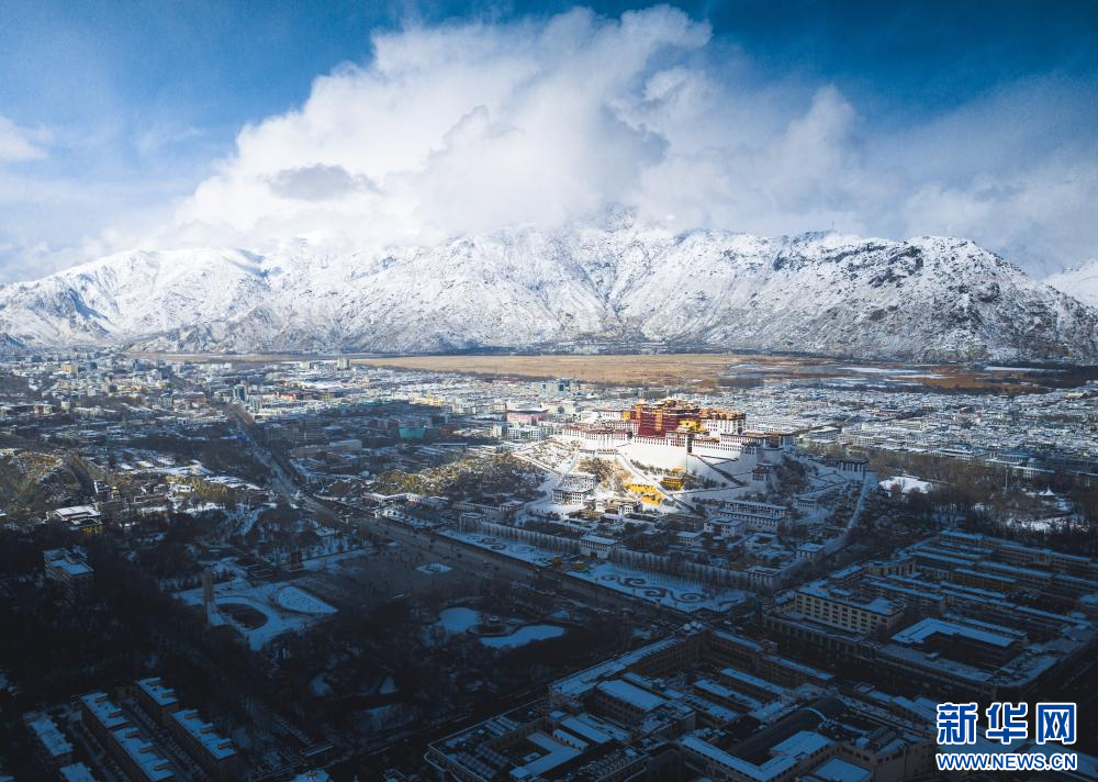 1月18日拍摄的雪后拉萨(无人机照片)。新华网 旦增努布 摄