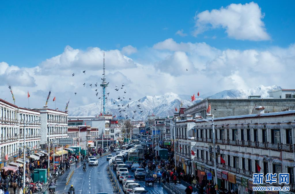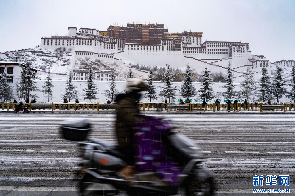 当日是农历腊月初八,西藏拉萨市迎来降雪,城区银装素裹,雪景分外优美,吸引了众多市民外出拍摄游玩。