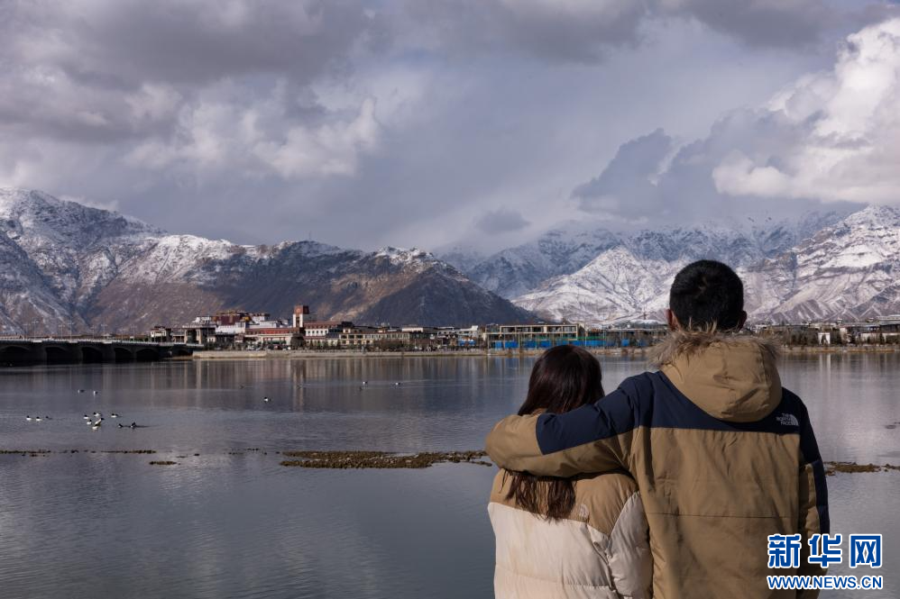 1月18日,游客在拉萨河边观赏雪景。新华网发 李腾 摄