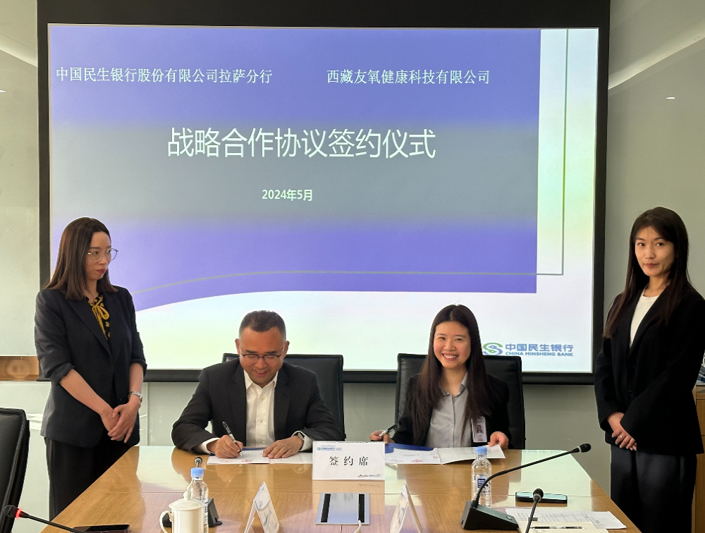 5月24日,民生银行拉萨分行与西藏友氧健康科技有限公司达成全面战略合作,旨在共同探索倡导高原群众健康吸氧,不断提升各族群众的获得感、幸福感、安全感。