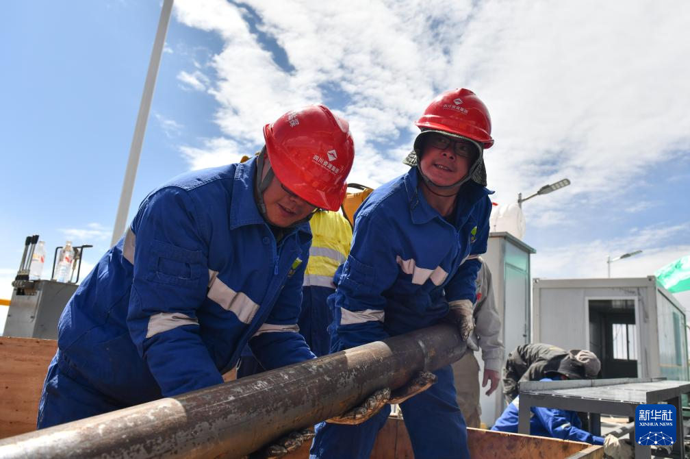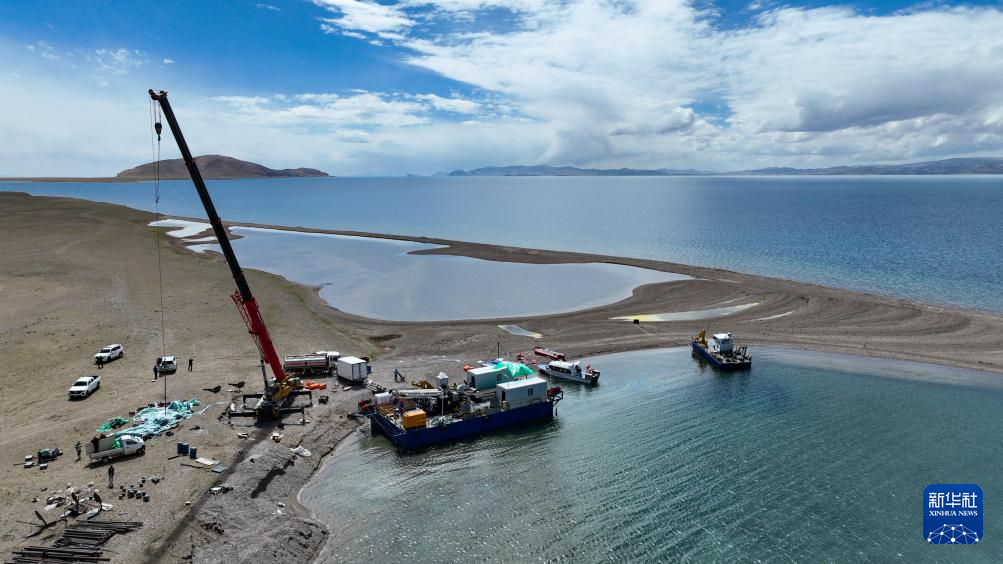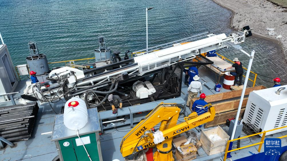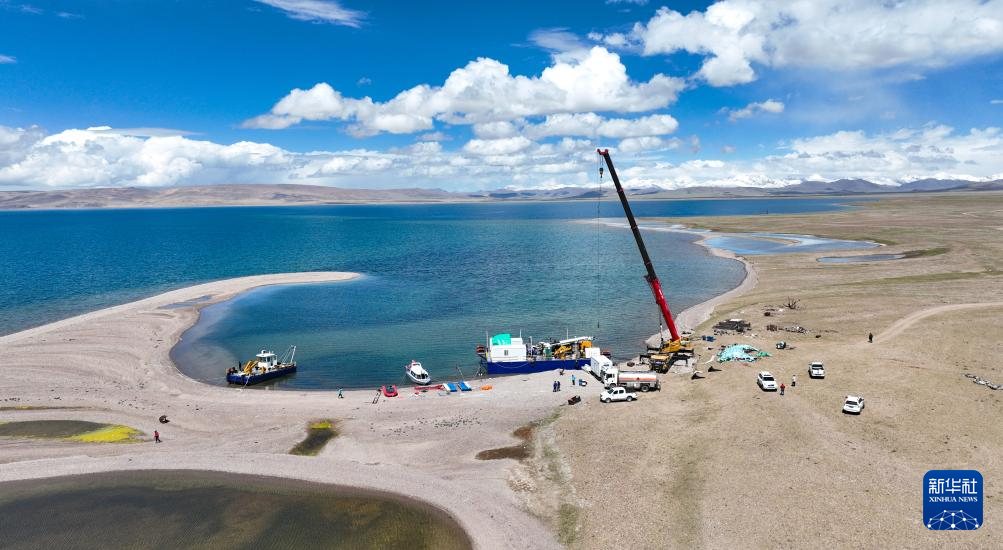 钻探技术人员架设湖泊钻探平台(6月1日摄)。新华社记者 晋美多吉 摄