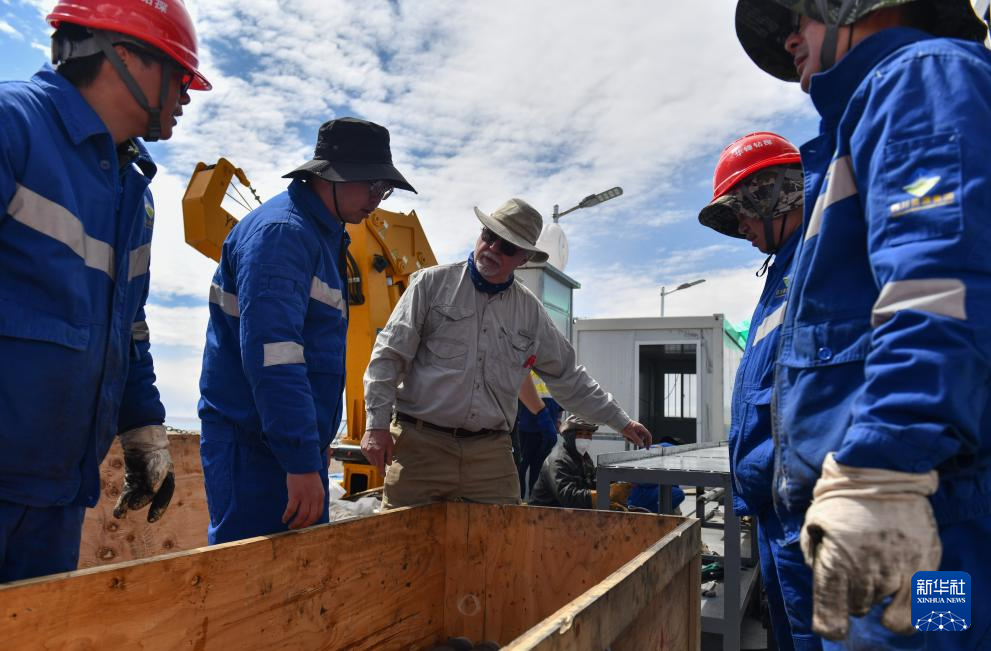 中外技术人员在架设湖泊钻探平台(6月1日摄)。新华社记者 晋美多吉 摄