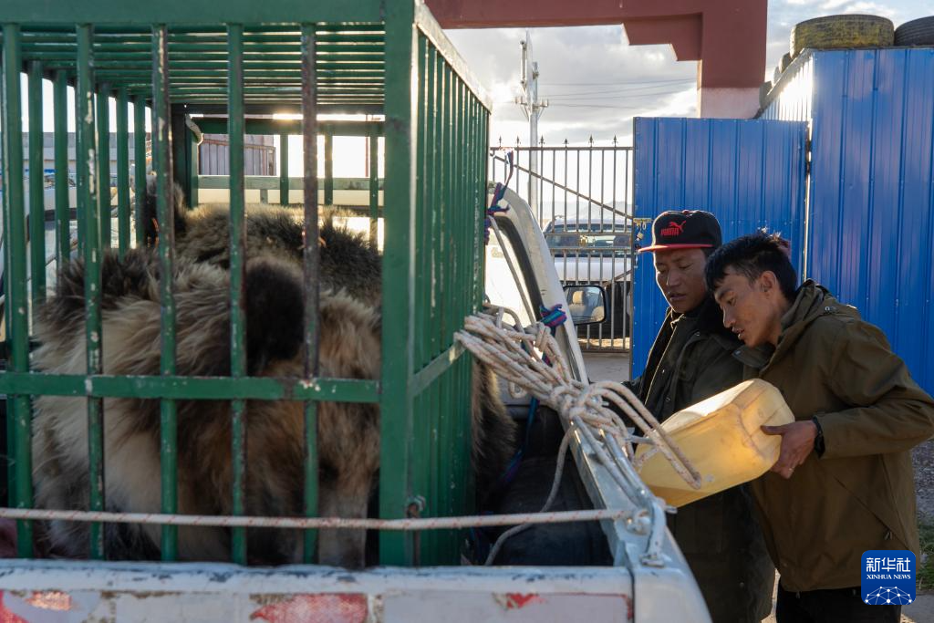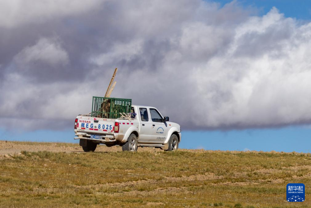 野保队员将棕熊运送至西藏那曲市尼玛县的羌塘国家级自然保护区核心区(8月30日摄)。新华社记者 姜帆 摄