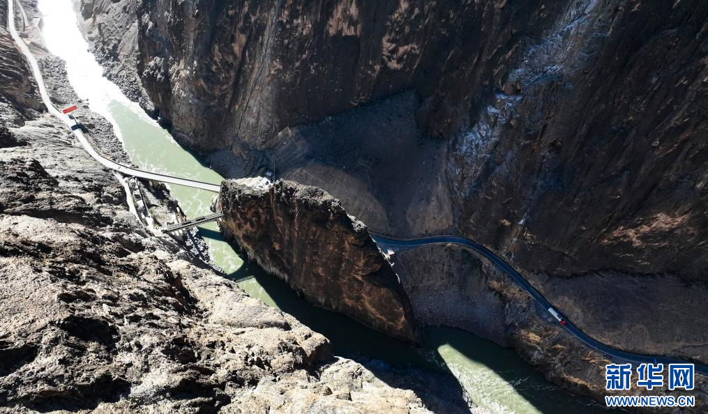 这是11月16日拍摄的位于西藏自治区昌都市八宿县境内的怒江大桥(无人机照片)。 新华社记者 杨帆 摄
