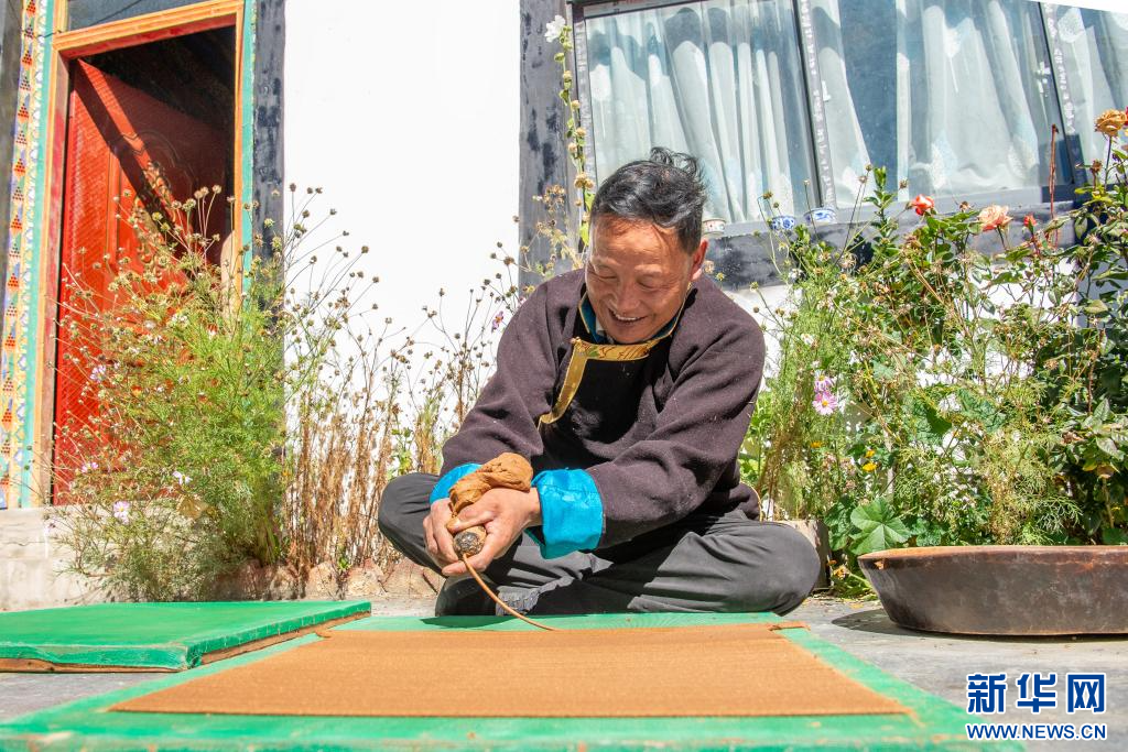 10月17日,西藏拉萨市尼木县吞巴镇吞达村县级非遗传承人普布次仁在制作藏香。新华网 旦增努布 摄