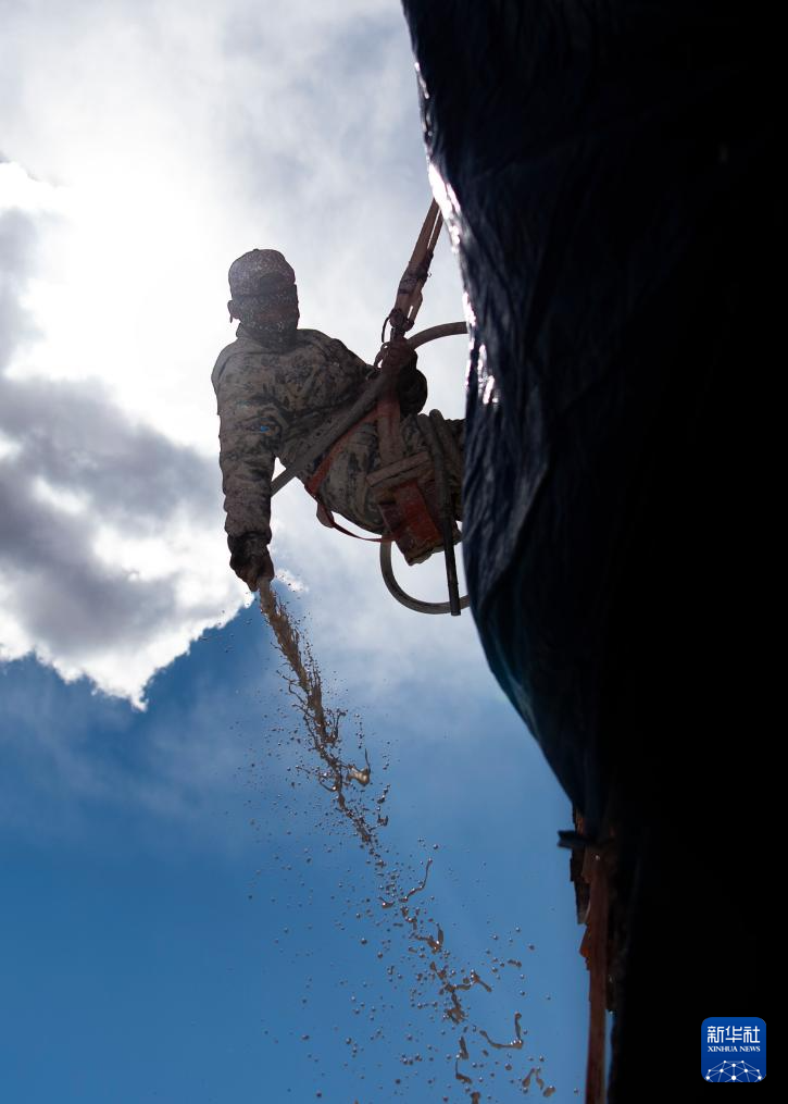 工作人员在喷洒涂料(10月24日摄)。新华社发(旦增努布摄)