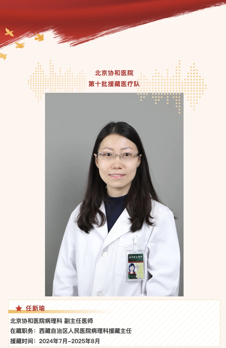 2024年7月,北京协和医院病理科副主任医师任新瑜接过医疗人才“组团式”援藏的接力棒,作为病理科连续十年援藏的第十棒,她在显微镜下续写了雪域高原“精准诊断”的生命答卷。一年来,她发出疑难病理报告3000余份,承担科室近四分之一的工作量,对全区5家医院的病理科进行现场质控督查指导,用专业与坚守为高原患者点亮生命的希望。