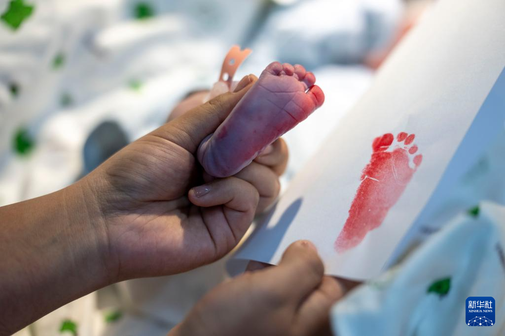2026年1月1日,西藏自治区人民医院妇产科助产医生次拉为新生儿印脚印。新华社记者 旦增尼玛曲珠 摄