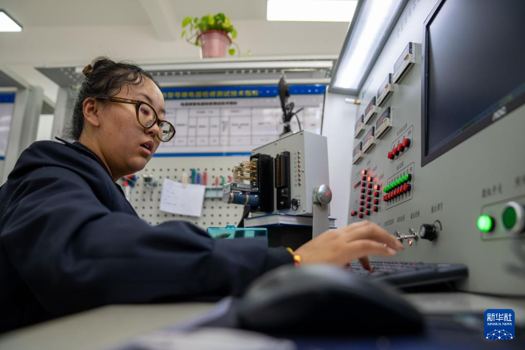 1月6日,拉萨基础设施段电务专修车间继电器检修工区的信号工路东燕在调试检测台。新华社记者 旦增尼玛曲珠 摄