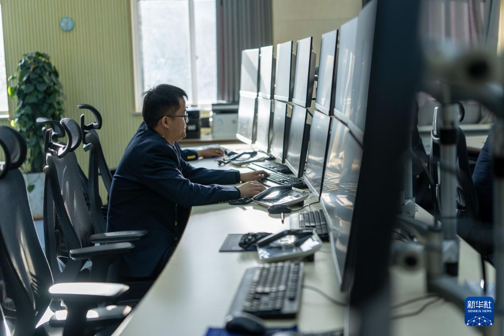 1月6日,拉萨基础设施段安全生产指挥中心调度计划监控组拥吉正在调阅监测数据。新华社记者 旦增尼玛曲珠 摄