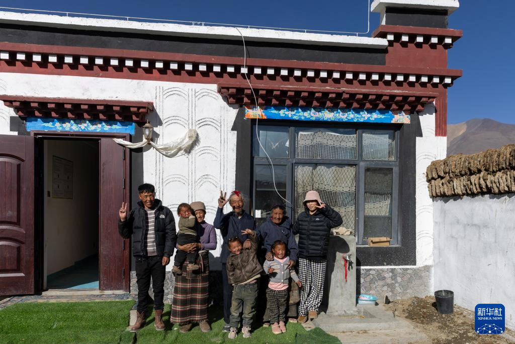 次仁拉姆(左二)和家人在新居前合影(2026年1月5日摄)。新华社记者 姜帆 摄