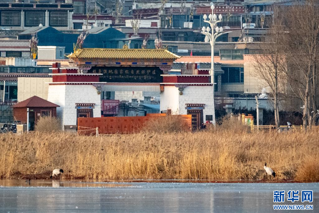 近日,西藏拉萨市拉鲁湿地迎来黑颈鹤越冬。这群“高原仙子”在草甸间觅食翩跹,与布达拉宫、拉萨城、湿地风光相映成趣。海拔超过3600米的拉鲁湿地,素有“拉萨之肺”美誉,是“世界海拔最高的城市天然湿地”。