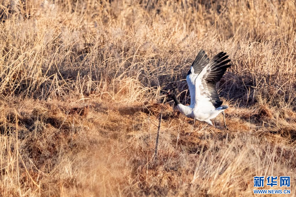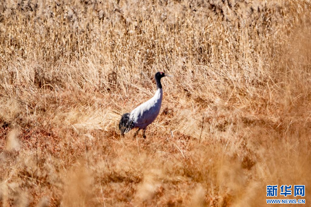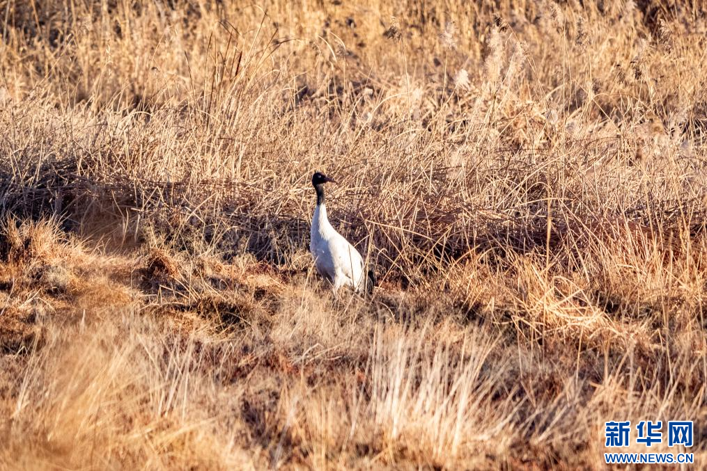 1月9日,在拉萨市拉鲁湿地拍摄的黑颈鹤。新华网 旦增努布 摄