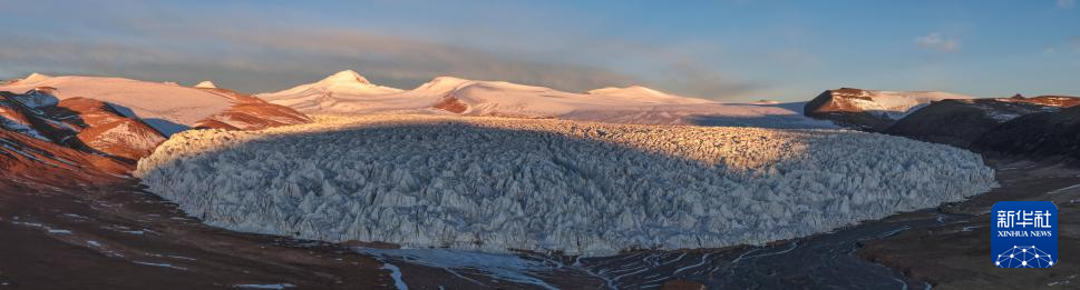 清晨的藏色岗日冰川(无人机拼接照片,3月10日摄)。新华社发(四郎江村摄)