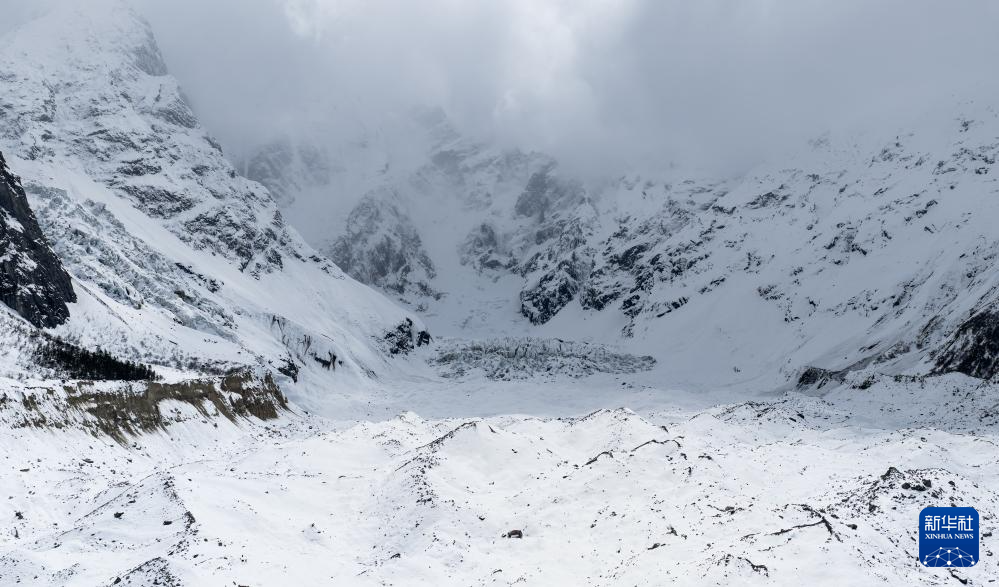 大雪覆盖的白普隆沟(3月21日摄,无人机照片)。新华社记者 洛卓嘉措 摄