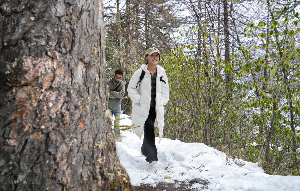 3月21日清晨,记者抵达白普隆沟的徒步起点。通往牧场的小路被白雪覆盖,远处传来融冰后流水的哗哗声,雪峰在云雾中若隐若现,同行的游客拉开登山杖,戴上冷帽、雪套,准备踏入这山谷深处。